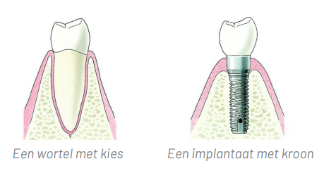 een kunstwortel. Een implantaat vervangt een