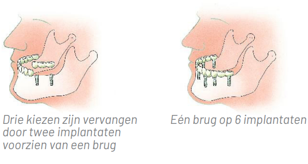 De implantaten worden in deze situatie van een