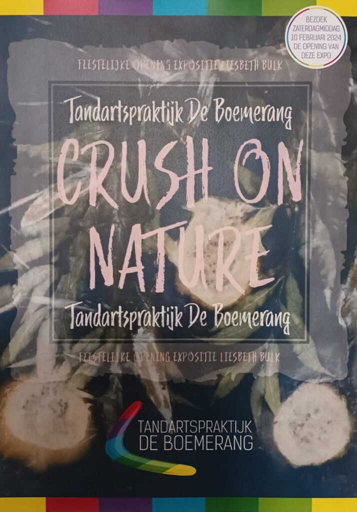 In 2024 bestaat Tandartspraktijk de Boemerang 10 jaar en hebben we een mooie nieuwe expositie van Crush on Nature! Wij nodigen u van harte uit